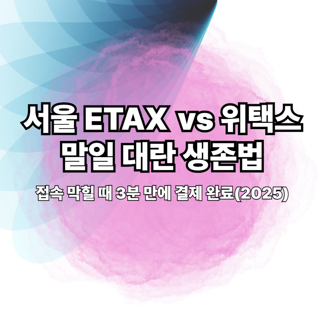 | 서울 ETAX | 공동·간편 인증 로그인 | 카드·계좌·간편결제 [확인 필요] | 수수료·적립 조건 상이 [확인 필요] | 서울 거주/사업자, 시스템 혼잡 시 새벽 시간대 | 말일 저녁 혼잡·브라우저 캐시 이슈 |